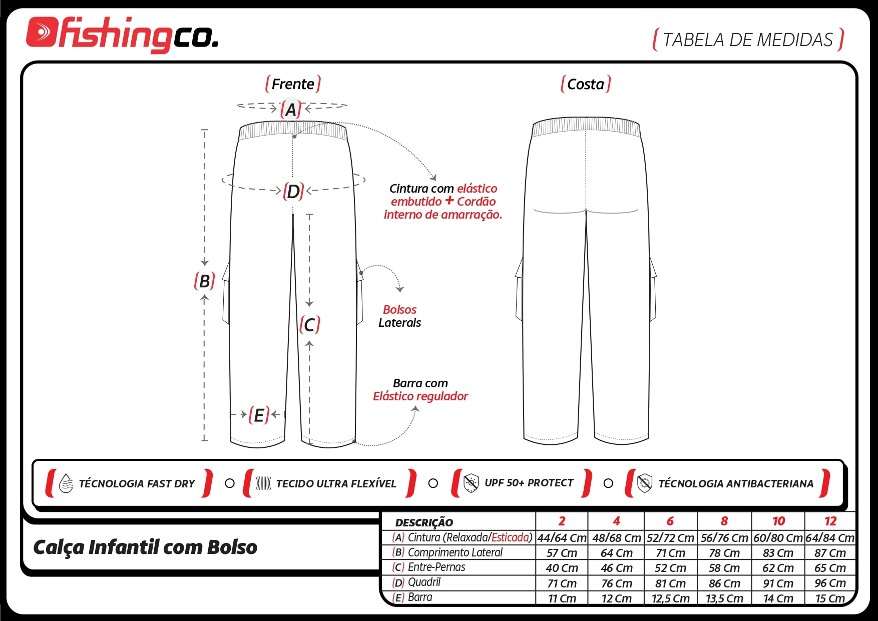 Calça infantil com bolsos estampada especialmente desenvolvida para atividades outdoor. As calças Fishing Co. tem proteção solar permanente UPF20.
