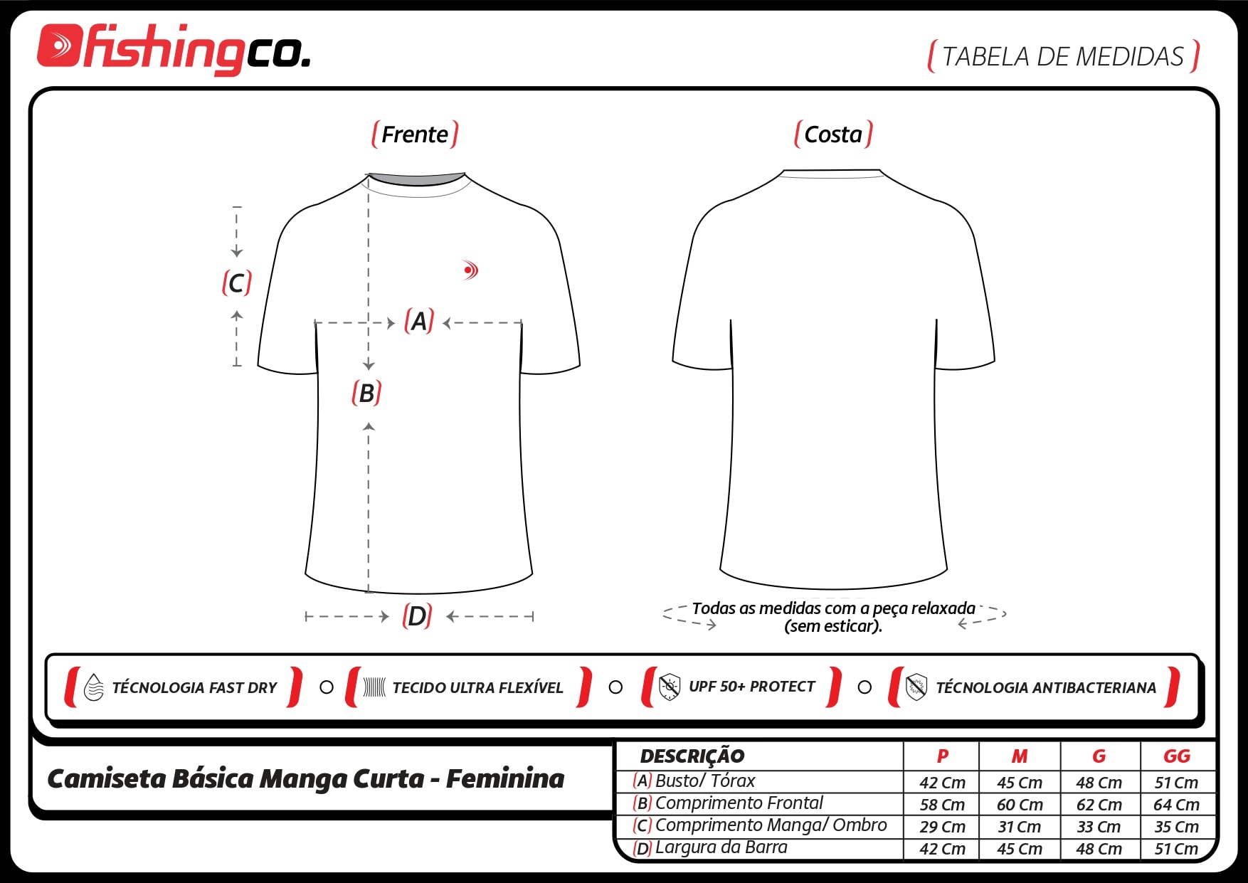 Camiseta manga curta básica feminina Fishing Company. Ideal para uso no dia a dia, práticas esportivas ou quando longa exposição ao sol.