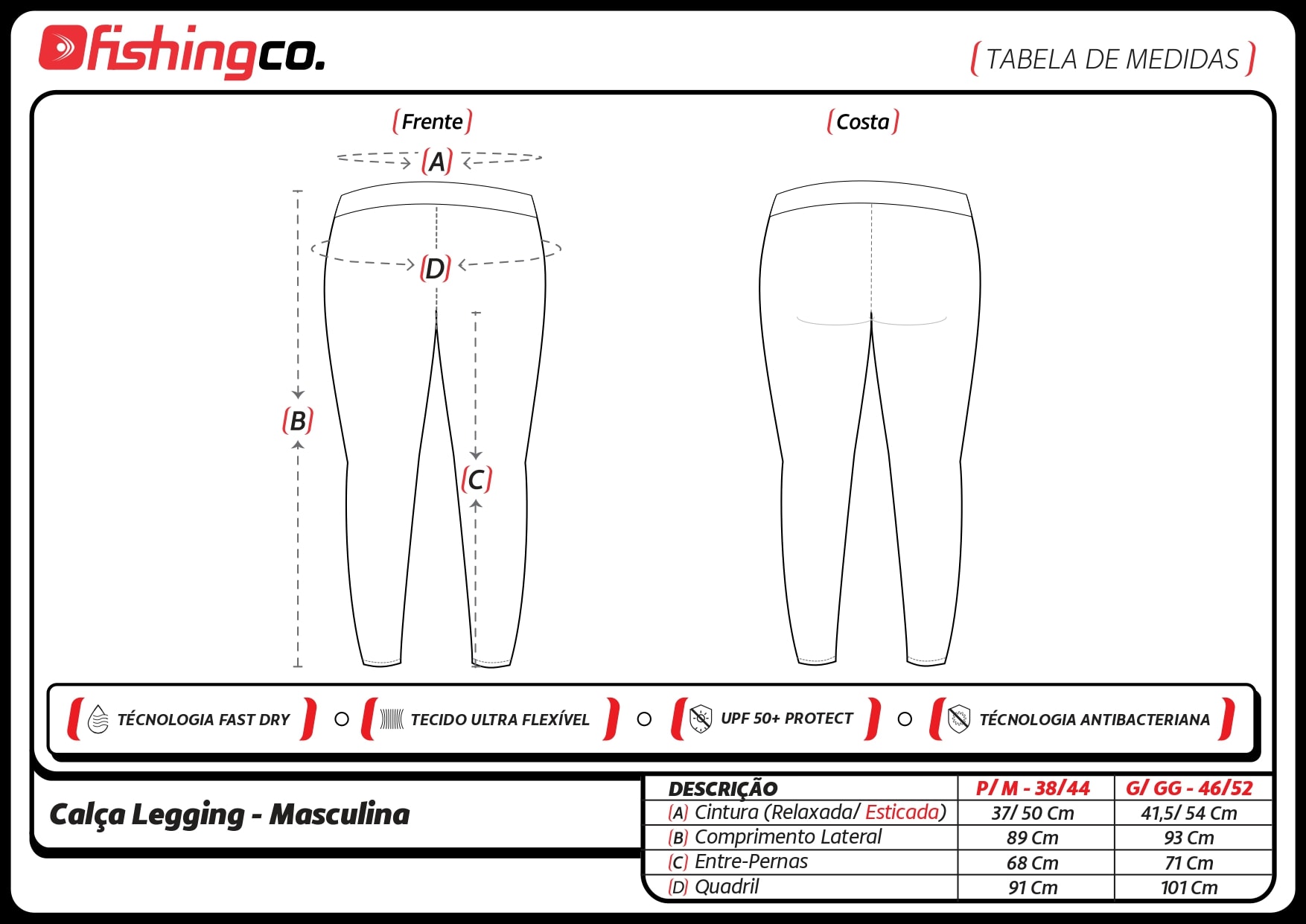 Legging masculina especialmente desenvolvida para uso em caiaques e atividades outdoor. As leggings Fishing Co. tem proteção solar permanente UPF 50+.