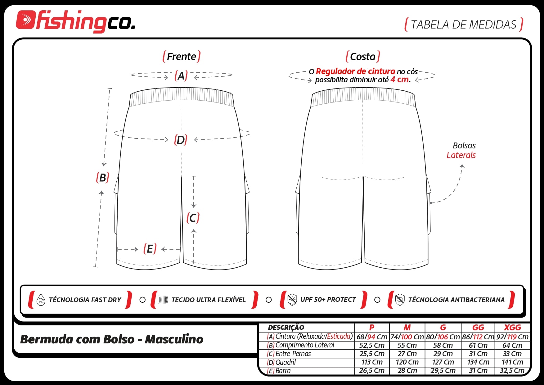 Bermuda masculina com bolsos especialmente desenvolvida para atividades outdoor. As bermudas Fishing Co. tem proteção solar permanente UPF20.
